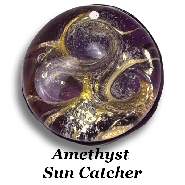 Our Sun Catcher/Tree Ornament Cremation Keepsakes are made from transparent, and semi-transparent glass. The ash/cremains are incorporate with pieces of Silver, Gold, Brass and other metals in an optical clear Pyrex glass to form a very three-dimensional unique design. Once completed I will sign the loved one’s full name or nick name, e.g. Dad, Mom, etc. on the back of the keepsake in 22k gold, so as to be Forever in Glass.