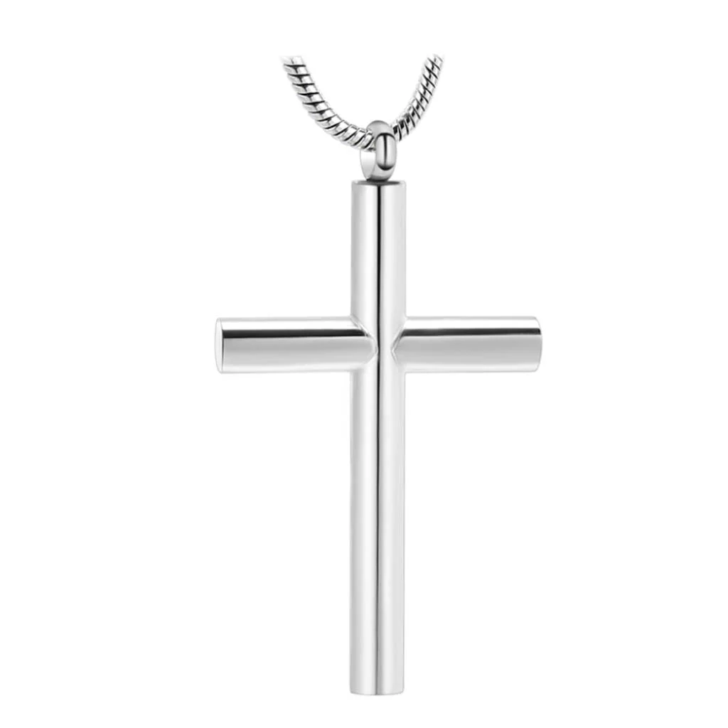 The bail of the cross unscrews and opens a small container to hold a tiny amount of cremains. After filling, we recommend a dot of glue on the screw to ensure it stays in place.